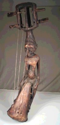 Luba Harp Luba Tribe (Zaire/Zambia) Height 18 Inches Width 6 inches Depth 6 inches Wood, animal hide. Price: $500.00