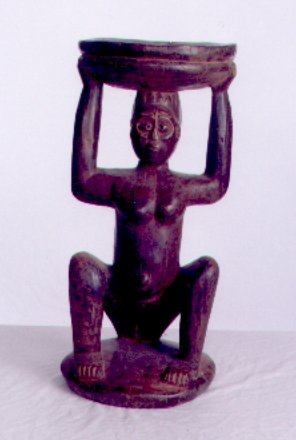 Luba Tribe Caryatid Chief’s Stool Lualaba River ,DRC (Congo) Carved from a single piece of wood Structurally solid Female bearer stools may represent founders of a clan 22 inches high $900.00