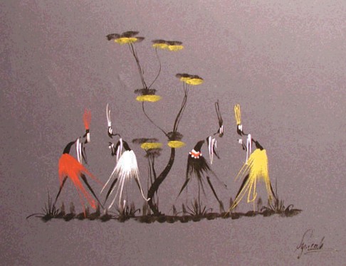 Vibrant Mid Century Hand-Painted signed Tribal Art.