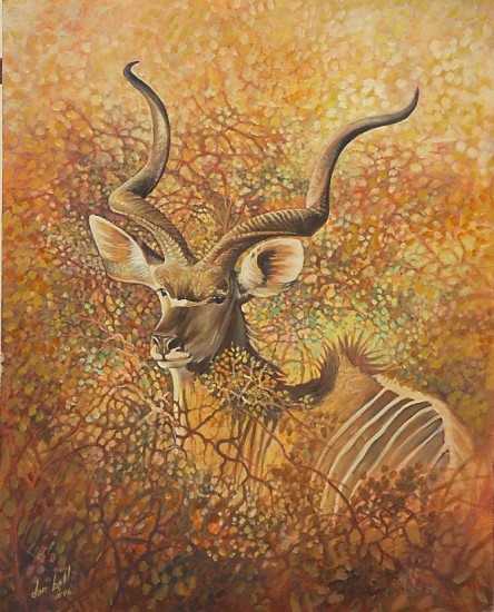 Title: "Mopani Kudu" Description: Male Kudu head & shoulders in Mopani bush, Savuti area Botswana. Size: 610 x 760 portrait format. Price: $600 US unframed