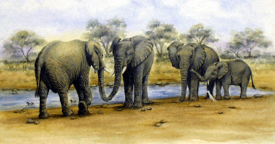 "Elephants at Waterhole"